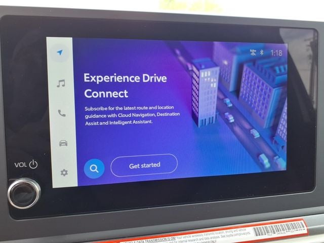 18. Drive Connect services may vary and are subject to change at any time without notice. Availability and accuracy depend on 4G network availability, a cellular connection and GPS signal. Without any one or more of these things, operability may be limited or precluded. Further, if and when 4G network changes or is discontinued, or the underlying technology required to support service becomes obsolete, then services will not work, and will need to be discontinued. Services require account registration through Toyota app and acceptance of Connected Services Terms of Use at toyota.com/content/dam/toyota/privacyvts/pdf/connected-services-terms-use.pdf and Master Data Consent. Data charges may apply. For Toyota’s Connected Services’ vehicle-generated data collection, use, sharing, and retention practices and agreements, see toyota.com/support/privacy-notice/. Trial period begins on original purchase or lease date of new vehicle. Services may vary and are subject to change without notice. Requires app download/registration, acceptance of Terms of Use and subscription after trial (if applicable). Data charges may apply.