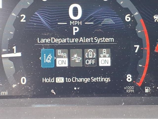 32. Lane Departure Alert with Steering Assist is designed to read visible lane markers under certain conditions. It provides a visual/audible alert and slight steering force when lane departure is detected. It is not a collision-avoidance system or a substitute for safe and attentive driving. Effectiveness depends on many factors including road, weather and vehicle conditions. See Owner’s Manual for limitations.