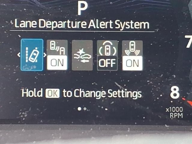 32. Lane Departure Alert with Steering Assist is designed to read visible lane markers under certain conditions. It provides a visual/audible alert and slight steering force when lane departure is detected. It is not a collision-avoidance system or a substitute for safe and attentive driving. Effectiveness depends on many factors including road, weather and vehicle conditions. See Owner’s Manual for limitations.