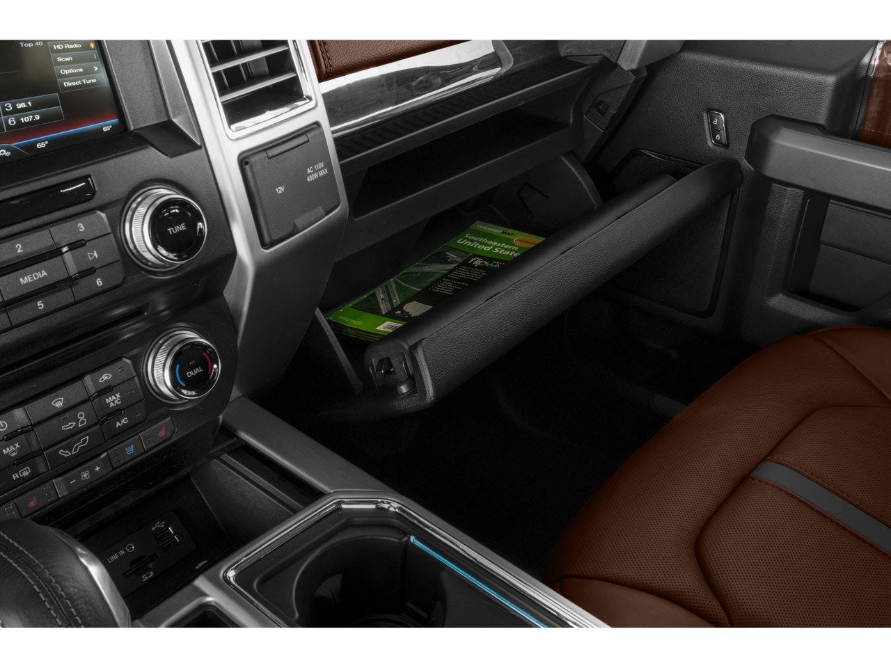 10 Speakers, 20 Polished Aluminum Wheels, 4-Wheel Disc Brakes, ABS brakes, Adaptive Cruise Control & Collision Warning, Adjustable pedals, Air Conditioning, Alloy wheels, AM/FM radio: SiriusXM, Auto High-beam Headlights, Auto tilt-away steering wheel, Auto-dimming door mirrors, Auto-dimming Rear-View mirror, Automatic temperature control, Auxiliary Transmission Oil Cooler, Black Unique Multi-Contour Leather Bucket Seats, Brake assist, Bumpers: chrome, CD player, Class IV Trailer Hitch Receiver, Compass, Delay-off headlights, Driver door bin, Driver vanity mirror, Dual front impact airbags, Dual front side impact airbags, Electronic Stability Control, Equipment Group 701A Luxury, Extended Range 36 Gallon Fuel Tank, Exterior Parking Camera Rear, Front anti-roll bar, Front Bucket Seats, Front Center Armrest, Front dual zone A/C, Front fog lights, Front License Plate Bracket, Front reading lights, Front wheel independent suspension, Fully automatic headlights, Garage door transmitter, Genuine wood door panel insert, Heated door mirrors, Heated front seats, Heated rear seats, Heated steering wheel, Illuminated entry, Integrated Trailer Brake Controller, Lane-Keeping System, Low tire pressure warning, Memory seat, Navigation System, Occupant sensing airbag, Outside temperature display, Overhead airbag, Overhead console, Panic alarm, Passenger door bin, Passenger vanity mirror, Pedal memory, Power door mirrors, Power driver seat, Power passenger seat, Power steering, Power windows, Premium audio system: Sony, Radio data system, Radio: Sony Single CD w/HD & SiriusXM Satellite, Rain sensing wipers, Rear Parking Sensors, Rear reading lights, Rear seat center armrest, Rear step bumper, Rear window defroster, Remote keyless entry, Security system, Speed control, Speed-sensing steering, Split folding rear seat, Steering wheel memory, Steering wheel mounted audio controls, SYNC with MyFord Touch, Tachometer, Tailgate Step w/Tailgate Lift Assist, Technology Package, Telescoping steering wheel, Tilt steering wheel, Traction control, Trailer Tow Package, Trip computer, Turn signal indicator mirrors, Twin Panel Moonroof, Upgraded Front Stabilizer Bar, Variably intermittent wipers, Ventilated front seats, Voice-Activated Navigation, Voltmeter.
