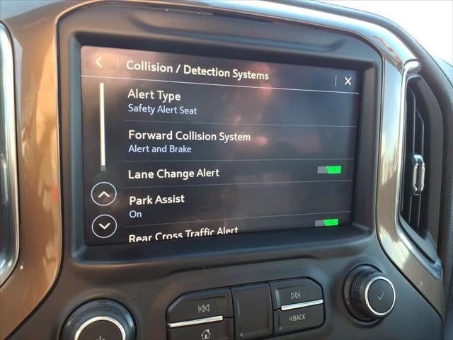 10-Way Power Driver Seat Adjuster w/Lumbar, 10-Way Power Passenger Seat Adjuster w/Lumbar, 12-Volt Rear Auxiliary Power Outlet, 120-Volt Bed Mounted Power Outlet, 120-Volt Instrument Panel Power Outlet, 15 Diagonal Multicolor Head-Up Display, 170 Amp Alternator, 3.73 Rear Axle Ratio, 4-Wheel Disc Brakes, 4G LTE Wi-Fi Hotspot Capable, 6 Rectangular Chromed Tubular Assist Steps, 720 Cold-Cranking Amps Heavy-Duty Battery, 8 Speakers, 8 Diagonal Multicolor Digital Display DIC, ABS brakes, Advanced Trailering System, Air Conditioning, Alloy wheels, AM/FM radio: SiriusXM with 360L, Apple CarPlay/Android Auto, Auto-dimming door mirrors, Auto-Dimming Inside Rear-View Mirror, Auto-dimming Rear-View mirror, Automatic Emergency Braking, Automatic temperature control, Bed View Camera, Black Chevytec Spray-On Bedliner w/Chevrolet Logo, Bluetooth® For Phone, BOSE Premium 7-Speaker Sound System, Brake assist, Bumpers: body-color, Chevrolet Connected Access Capable, Chrome Front Grille, Chrome Mirror Caps, Chrome Recovery Hooks, Color-Keyed Carpeting Floor Covering, Compass, Deep-Tinted Glass, Delay-off headlights, Driver door bin, Driver Memory, Driver vanity mirror, Dual Charge-Only USB Ports (2nd Row), Dual front impact airbags, Dual front side impact airbags, Electric Rear-Window Defogger, Electrical Lock Control Steering Column, Electronic Cruise Control w/Set & Resume Speed, Electronic Stability Control, Floor-Mounted Center Console, Following Distance Indicator, Forward Collision Alert, Front anti-roll bar, Front Bucket Seats, Front Bucket Seats w/Center Console, Front Carpeted Floor Mats, Front Center Armrest, Front dual zone A/C, Front fog lights, Front LED Fog Lamps, Front License Plate Kit, Front reading lights, Front wheel independent suspension, Fully automatic headlights, Garage door transmitter, HD Radio, HD Rear Vision Camera, HD Surround Vision w/2 Trailer View Cam Provisions, Heated & Auto-Dim Pwr Vertical Trailering Mirrors, Heated 2nd Row Outboard Seats, Heated door mirrors, Heated Driver & Front Outboard Passenger Seating, Heated front seats, Heated rear seats, Heated Steering Wheel, Heated steering wheel, Hill Descent Control, Hitch Guidance w/Hitch View, Illuminated entry, Integrated Trailer Brake Controller, IntelliBeam Automatic High Beam On/Off, Keyless Open & Start, Lane Change Alert w/Side Blind Zone Alert, Lane Departure Warning System, Leather-Wrapped Steering Wheel, LED Cargo Area Lighting, LED Smoked Amber Roof Marker Lamps, Low tire pressure warning, Manual Tilt & Telescoping Steering Column, Memory seat, Navigation System, Occupant sensing airbag, Off-Road Suspension, OnStar & Chevrolet Connected Services Capable, Outside temperature display, Overhead airbag, Overhead console, Panic alarm, Passenger door bin, Passenger vanity mirror, Perforated Leather-Appointed Seat Trim, Polished Exhaust Tip, Power Door Locks, Power door mirrors, Power driver seat, Power Front Windows w/Driver Express Up/Down, Power Front Windows w/Passenger Express Up/Down, Power passenger seat, Power Rear Windows w/Express Down, Power Sliding Rear Window w/Defogger, Power steering, Power windows, Preferred Equipment Group 3LZ, Premium audio system: Chevrolet Infotainment 3 Premium, Radio: Chevrolet Infotainment 3 Premium System, Rear Camera Mirror, Rear Carpeted Floor Mats, Rear Cross Traffic Alert, Rear reading lights, Rear seat center armrest, Rear step bumper, Rear Wheelhouse Liners, Rear window defroster, Remote keyless entry, Remote Vehicle Starter System, Safety Alert Seat, Safety Package II, Security system, SiriusXM w/360L, Speed control, Speed-sensing steering, Split folding rear seat, Steering Wheel Audio Controls, Steering wheel mounted audio controls, Suspension Package, Tachometer, Technology Package, Telescoping steering wheel, Tilt steering wheel, Traction contr