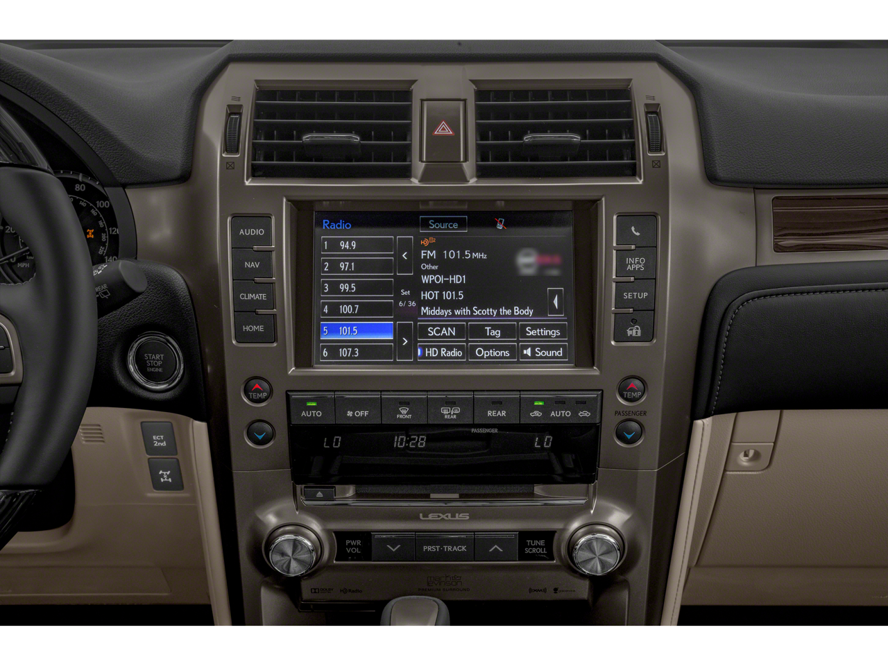 • Radio: AM/FM Lexus Multimedia System -inc: 8" touch screen, 9 speakers, in-dash single CD player w/Automatic Sound Levelizer (ASL), MP3/WMA capability, cache radio, subscription-free traffic and weather updates via HD Radio, Bluetooth® and USB smartphone connectivity and Siri Eyes Free mode w/select and play music from iTunes, call contacts, hear and compose text messages and emails, hear sports scores, stock information and weather, use maps and get directions (turn-by-turn navigation can be requested through Siri and Apple maps) map displayed on phone screen, perform POI searches, requested search information read back to driver over vehicle audio system, read notifications and read calendar information, add reminders, calendar appointments and notes