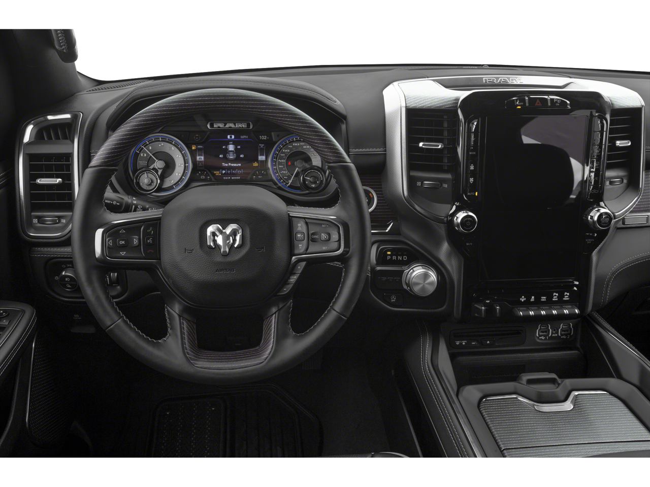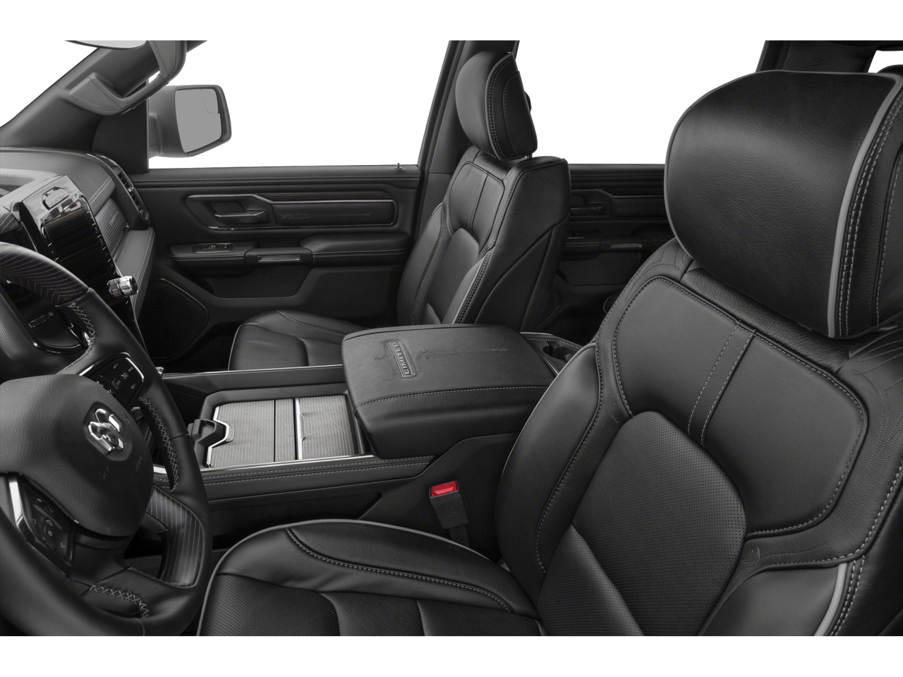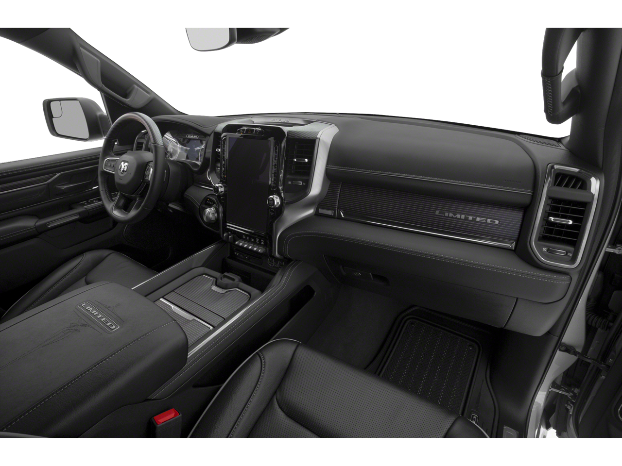 1-Yr SiriusXM Guardian Trial, 10 Speakers, 3.21 Rear Axle Ratio, 4-Wheel Disc Brakes, 48V Belt Starter Generator, 4G LTE Wi-Fi Hot Spot, ABS brakes, Adjustable pedals, Air Conditioning, Alloy wheels, AM/FM radio: SiriusXM with 360L, Apple CarPlay, Apple CarPlay/Android Auto, Audio memory, Auto High-beam Headlights, Auto-dimming door mirrors, Auto-dimming Rear-View mirror, Auto-leveling suspension, Automatic temperature control, Bed Utility Group, Body Color Bumper Group, Bodyside moldings, Brake assist, Bumpers: chrome, Chrome Exterior Mirrors, Compass, Delay-off headlights, Disassociated Touchscreen Display, Dome Dual LED Reading Lamp, Driver door bin, Driver vanity mirror, Dual front impact airbags, Dual front side impact airbags, Dual-Pane Panoramic Sunroof, Electronic Stability Control, Emergency communication system: SiriusXM Guardian, Exterior 115V AC Outlet, For More Info, Call 800-643-2112, Front anti-roll bar, Front Bucket Seats, Front Center Armrest w/Storage, Front dual zone A/C, Front fog lights, Front License Plate Bracket, Front reading lights, Front wheel independent suspension, Fully automatic headlights, Garage door transmitter, Genuine wood console insert, Genuine wood dashboard insert, Genuine wood door panel insert, Google Android Auto, GPS Antenna Input, GPS Navigation, HD Radio, Heads-Up Display, Heated door mirrors, Heated front seats, Heated rear seats, Heated steering wheel, Illuminated entry, Integrated Center Stack Radio, Integrated Voice Command w/Bluetooth®, Leather steering wheel, LED CHMSL Lamp, LED Dome/Reading Lamp, Limited Level 1 Equipment Group, Low tire pressure warning, Memory seat, Multi-Function Tailgate, Navigation System, Occupant sensing airbag, Outside temperature display, Overhead airbag, Overhead console, Panic alarm, ParkView Rear Back-Up Camera, Passenger door bin, Passenger vanity mirror, Pedal memory, Power door mirrors, Power driver seat, Power passenger seat, Power steering, Power windows, Premium Leather Trimmed Bucket Seats, Quick Order Package 28M Limited, Radio data system, Radio: Uconnect 12 w/Navigation, Rain sensing wipers, RamBox Cargo Management System, Rear anti-roll bar, Rear seat center armrest, Rear step bumper, Rear window defroster, Rearview Autodim Digital Display Mirror, Remote keyless entry, Security system, SiriusXM Radio Service, SiriusXM Satellite Radio, SiriusXM Traffic Plus, SiriusXM Travel Link, Speed control, Split folding rear seat, Steering wheel mounted audio controls, Surround View Camera System, Tachometer, Technology Group, Telescoping steering wheel, Tilt steering wheel, Traction control, Trip computer, Turn signal indicator mirrors, USB Host Flip, Variably intermittent wipers, Ventilated front seats, Voltmeter, Wheels: 20 x 9 Polished w/Inserts, Wheels: 22 x 9 Polish/Painted w/Inserts.