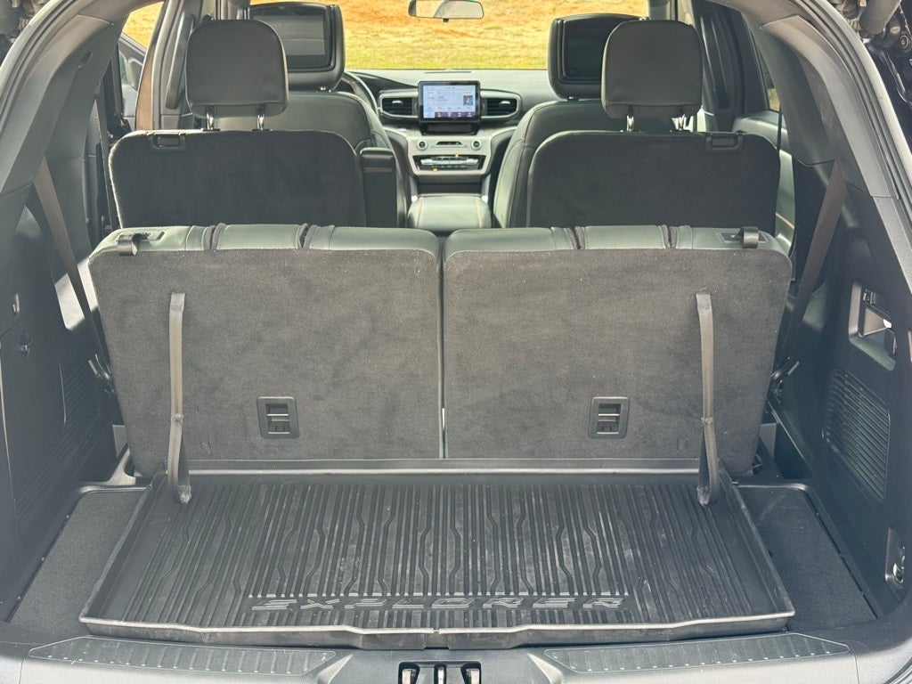 1st Row Heated Seats, 3.58 Torsen Limited Slip Rear Axle, 3rd row seats: bench, 4-Wheel Disc Brakes, 6 Speakers, ABS brakes, ActiveX Seat Material Captain's Charis, Air Conditioning, Alloy wheels, AM/FM radio: SiriusXM, AM/FM Stereo, Auto High-beam Headlights, Automatic temperature control, Brake assist, Bumpers: body-color, Compass, Delay-off headlights, Driver door bin, Driver vanity mirror, Dual front impact airbags, Dual front side impact airbags, Electronic Stability Control, Emergency communication system: SYNC 3 911 Assist, Exterior Parking Camera Rear, FordPass Connect, Four wheel independent suspension, Front anti-roll bar, Front Bucket Seats, Front Center Armrest, Front dual zone A/C, Front fog lights, Front reading lights, Fully automatic headlights, Heated door mirrors, Heated front seats, Heated rear seats, Heated steering wheel, Illuminated entry, Knee airbag, Leather steering wheel, Low tire pressure warning, Navigation System, Occupant sensing airbag, Outside temperature display, Overhead airbag, Overhead console, Panic alarm, Passenger door bin, Passenger vanity mirror, Power door mirrors, Power driver seat, Power Liftgate, Power passenger seat, Power steering, Power windows, Rear air conditioning, Rear anti-roll bar, Rear reading lights, Rear window defroster, Rear window wiper, Remote keyless entry, Roof rack: rails only, Security system, SelectShift Capability w/Paddle Shifters, Speed control, Speed-sensing steering, Speed-Sensitive Wipers, Split folding rear seat, Spoiler, Sport steering wheel, Steering wheel mounted audio controls, SYNC 3 Communications & Entertainment System, SYNC 3/Apple CarPlay/Android Auto, Tachometer, Telescoping steering wheel, Tilt steering wheel, Traction control, Trip computer, Variably intermittent wipers, Voice-Activated Touchscreen Navigation System, Wheels: 18 High Gloss Black-Painted Aluminum.