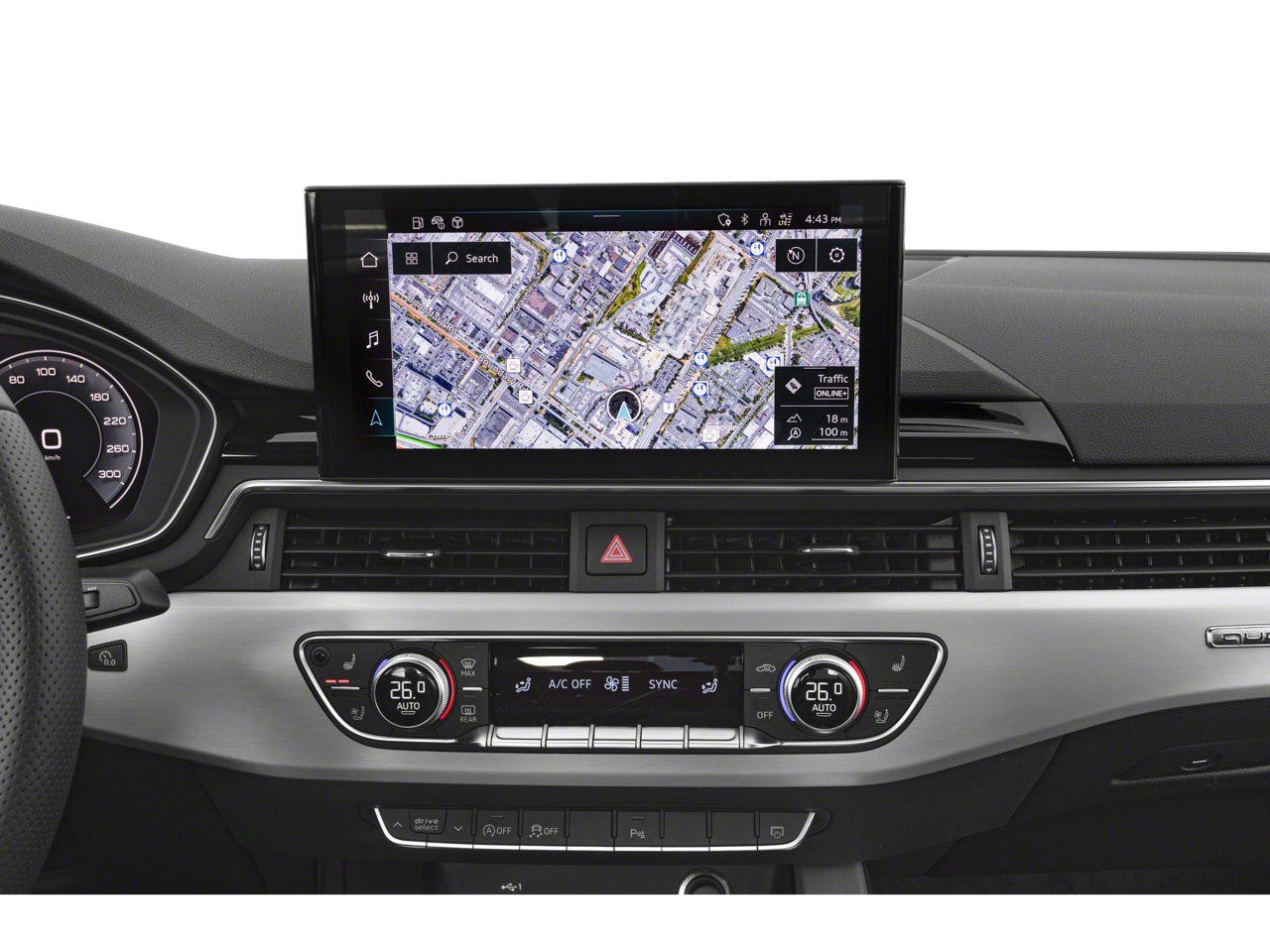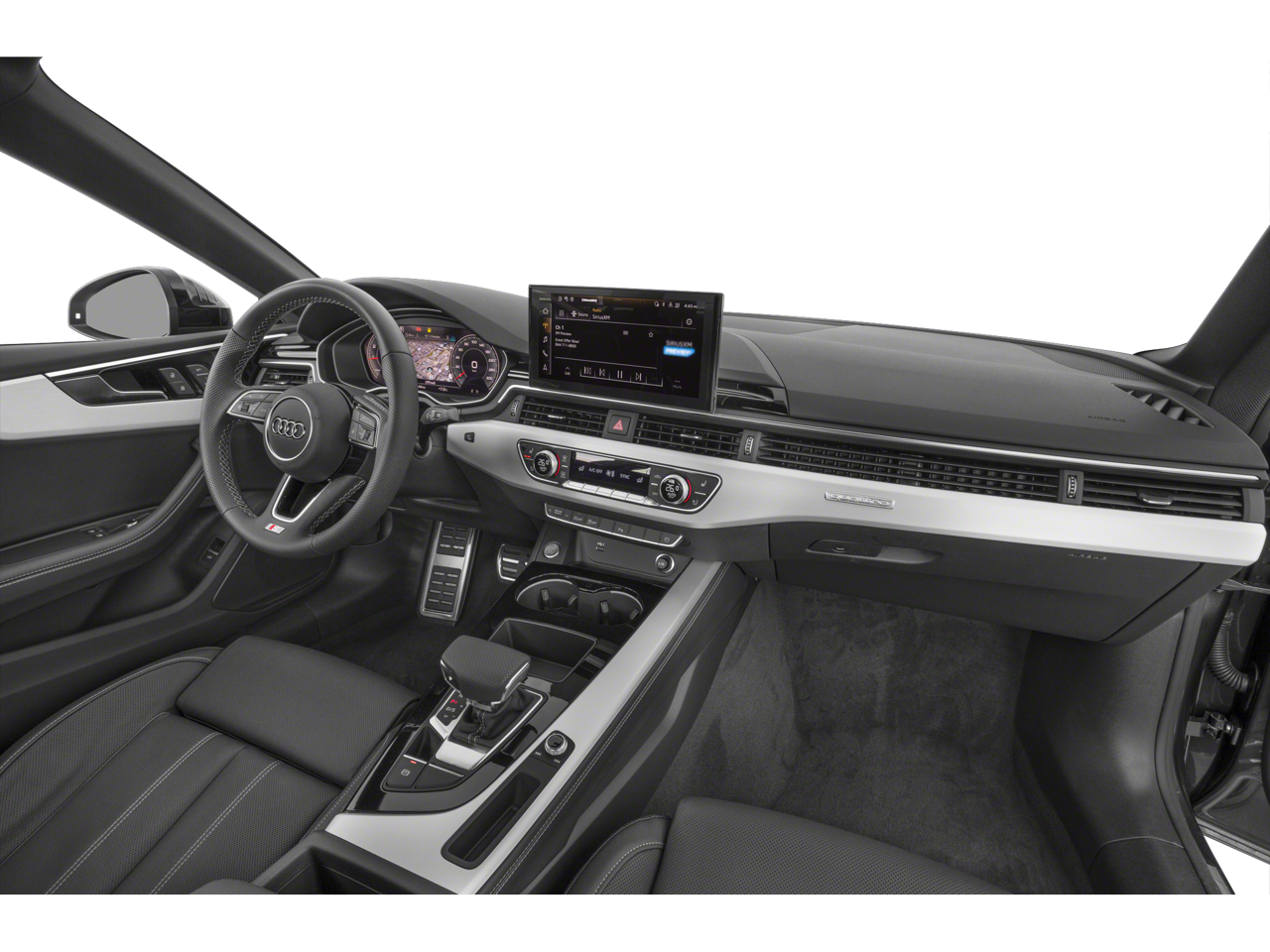 10 Speakers, 4-Wheel Disc Brakes, ABS brakes, Air Conditioning, Alloy wheels, AM/FM radio, Anti-whiplash front head restraints, Auto High-beam Headlights, Auto-dimming Rear-View mirror, Automatic temperature control, Brake assist, Bumpers: body-color, Compass, Delay-off headlights, Driver door bin, Driver vanity mirror, Dual front impact airbags, Dual front side impact airbags, Electronic Stability Control, Emergency communication system: Audi connect CARE, Exterior Parking Camera Rear, Four wheel independent suspension, Front anti-roll bar, Front Bucket Seats, Front Center Armrest, Front dual zone A/C, Front fog lights, Front reading lights, Garage door transmitter: HomeLink, Genuine wood console insert, Genuine wood dashboard insert, Genuine wood door panel insert, Heated door mirrors, Heated front seats, Heated Front Sport Seats, Illuminated entry, Knee airbag, Leather Seating Surfaces, Leather Shift Knob, Leather steering wheel, Low tire pressure warning, Occupant sensing airbag, Outside temperature display, Overhead airbag, Overhead console, Panic alarm, Passenger door bin, Passenger vanity mirror, Power adjustable front head restraints, Power door mirrors, Power driver seat, Power moonroof, Power passenger seat, Power steering, Power windows, Radio data system, Radio: Audi Sound System, Rain sensing wipers, Rear air conditioning, Rear anti-roll bar, Rear reading lights, Rear seat center armrest, Rear window defroster, Remote keyless entry, Speed control, Speed-sensing steering, Speed-Sensitive Wipers, Split folding rear seat, Steering wheel mounted audio controls, Tachometer, Telescoping steering wheel, Tilt steering wheel, Traction control, Trip computer, Turn signal indicator mirrors, Variably intermittent wipers, Wheels: 18 5-Double-Spoke Design.