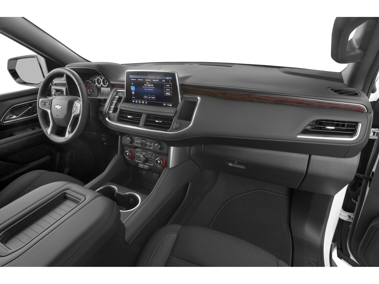 1st & 2nd Row Color-Keyed Carpeted Floor Mats, 3.23 Rear Axle Ratio, 3rd row seats: split-bench, 4-Wheel Disc Brakes, 6 Speakers, 6-Speaker Audio System Feature, ABS brakes, Air Conditioning, Alloy wheels, AM/FM radio: SiriusXM with 360L, Apple CarPlay/Android Auto, Auto High-beam Headlights, Automatic temperature control, Black Illuminated Front Bowtie Emblem (LPO), Brake assist, Bumpers: body-color, Color-Keyed Carpeting Floor Covering, Compass, Delay-off headlights, Driver & Front Outboard Passenger Airbags, Driver Alert Package, Driver door bin, Driver vanity mirror, Dual front impact airbags, Dual front side impact airbags, Electronic Stability Control, Emergency communication system: OnStar and Chevrolet connected services capable, Floor Console w/Storage Area, Four wheel independent suspension, Front anti-roll bar, Front Bucket Seats, Front Center Armrest, Front dual zone A/C, Front High-Back Reclining Bucket Seats, Front reading lights, Fully automatic headlights, Heated door mirrors, Illuminated entry, Infotainment Display, Lane Change Alert w/Side Blind Zone Alert, LED Daytime Running Lamps, Low tire pressure warning, Occupant sensing airbag, Outside temperature display, Overhead airbag, Overhead console, Panic alarm, Passenger door bin, Passenger vanity mirror, Power door mirrors, Power driver seat, Power passenger seat, Power steering, Power windows, Preferred Equipment Group 1LS, Premium Cloth Seat Trim, Premium Smooth Ride Suspension, Radio: Chevrolet Infotainment 3 System, Rain sensing wipers, Rear air conditioning, Rear anti-roll bar, Rear Cross Traffic Alert, Rear reading lights, Rear seat center armrest, Rear window defroster, Rear window wiper, Remote keyless entry, Remote Start, Roof rack: rails only, Security system, SiriusXM Radio w/360L, Speed control, Speed-sensing steering, Split folding rear seat, Spoiler, Steering wheel mounted audio controls, Tachometer, Telescoping steering wheel, Tilt steering wheel, Traction control, Trip computer, Variably intermittent wipers, Voltmeter, Wheels: 18 x 8.5 Bright Silver Painted Aluminum, Wheels: 20 x 9 Painted Aluminum, Wrapped Steering Wheel.