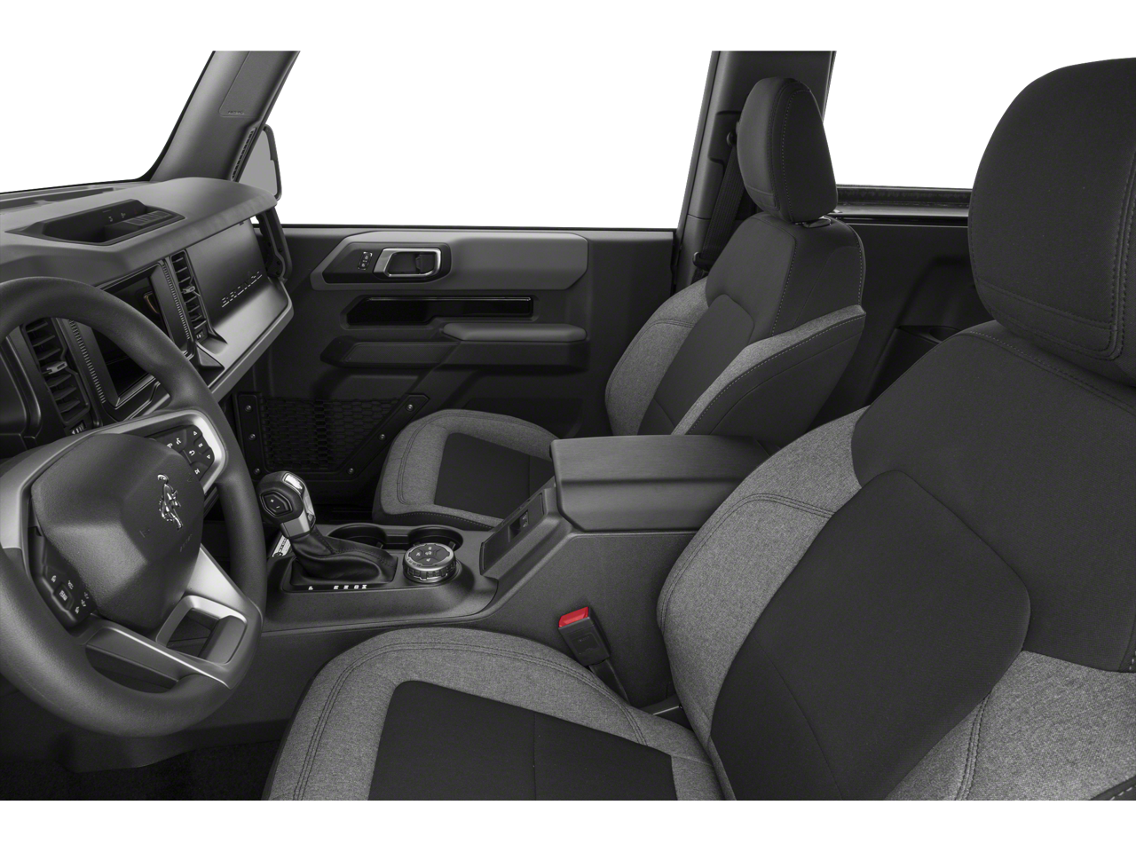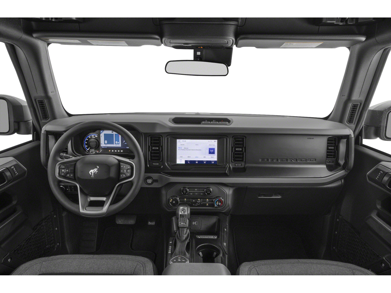 4-Wheel Disc Brakes, 7 Speakers, ABS brakes, Air Conditioning, AM/FM radio: SiriusXM with 360L, AM/FM Stereo, Auto High-beam Headlights, Black Roof Rails w/Crossbars, Body Armor - Protective Moldings (DIO), Brake assist, Brush Guard, Compass, Convertible HardTop, Convertible roof lining, Delay-off headlights, Driver door bin, Driver vanity mirror, Dual front impact airbags, Dual front side impact airbags, Electronic Stability Control, Emergency communication system: 911 Assist, Exterior Parking Camera Rear, Ford Performance Heavy-Duty Modular Front Bumper, Front & Rear Floor Liners w/o Carpet Floor Mats, Front anti-roll bar, Front Bucket Seats, Front Center Armrest, Front reading lights, Front wheel independent suspension, Fully automatic headlights, Glass rear window, Heated door mirrors, Illuminated entry, Integrated roll-over protection, Low tire pressure warning, Occupant sensing airbag, Outside temperature display, Overhead airbag, Overhead console, Panic alarm, Passenger door bin, Passenger vanity mirror, Power door mirrors, Power steering, Power windows, Radio data system, Rear window defroster, Rear window wiper, Remote keyless entry, Security system, SiriusXM Radio w/360L, Speed control, Split folding rear seat, Steering wheel mounted audio controls, SYNC 4, Tachometer, Telescoping steering wheel, Tilt steering wheel, Traction control, Trip computer, Tube Doors - 2-Door (DIO), Variably intermittent wipers, Wheel Lock Kit (DIO), Wheels: 17 Black High Gloss-Painted Aluminum.