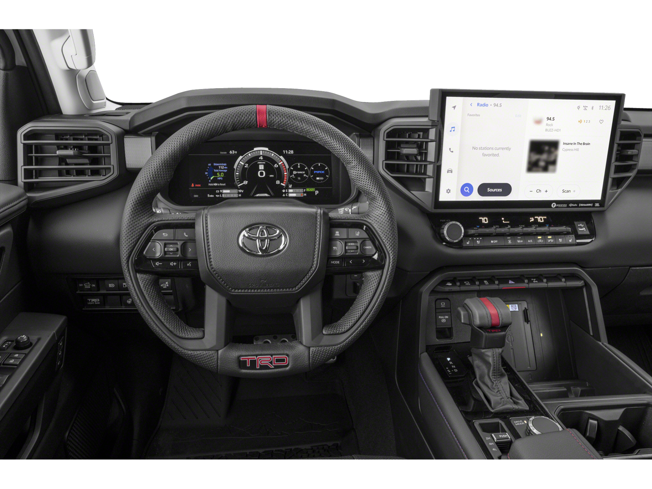 12 Speakers, 3.31 Axle Ratio, 4-Wheel Disc Brakes, 400W/120V AC Rear Seat & Bed Power Supply, ABS brakes, Air Conditioning, Alloy wheels, AM/FM radio: SiriusXM, Apple CarPlay/Android Auto, Auto High-beam Headlights, Auto-dimming door mirrors, Auto-dimming Rear-View mirror, Automatic temperature control, Black Dual Exhaust Tips w/Debossed TRD Pro Logo, Brake assist, Bumpers: body-color, Delay-off headlights, Driver door bin, Driver vanity mirror, Dual front impact airbags, Dual front side impact airbags, Electronic Stability Control, Emergency communication system: Safety Connect (10-year trial), Front & Rear Mud Guards, Front anti-roll bar, Front Bucket Seats, Front Center Armrest, Front dual zone A/C, Front fog lights, Front reading lights, Front wheel independent suspension, Fully automatic headlights, Garage door transmitter: HomeLink, Heated & Ventilated Front Bucket Seats, Heated Color-Keyed Outside Mirrors, Heated door mirrors, Heated front seats, Heated steering wheel, Illuminated entry, Knee airbag, Leather Shift Knob, LED Lightbar w/Fog & Marker Lights, Low tire pressure warning, Memory seat, Multi-Terrain Back Monitor, Navigation System, Occupant sensing airbag, Outside temperature display, Overhead airbag, Overhead console, Panic alarm, Panoramic View Back Monitor, Passenger door bin, Passenger vanity mirror, Power door mirrors, Power driver seat, Power moonroof, Power Panoramic Roof, Power passenger seat, Power steering, Power windows, Qi-Compatible Wireless Smartphone Charger, Radio data system, Radio: Premium Audio w/JBL, Rear reading lights, Rear seat center armrest, Rear step bumper, Rear window defroster, Remote keyless entry, Security system, Smoked-Finish Premium LED Headlights & DRL, SofTex Seat Trim, Speed control, Speed-sensing steering, Split folding rear seat, Sport steering wheel, Steering wheel mounted audio controls, Tachometer, Telescoping steering wheel, Tilt steering wheel, Towing Technology Package, Traction control, TRD Pro Heated Leather-Trimmed Steering Wheel, TRD Pro Package, Trip computer, Turn signal indicator mirrors, Variably intermittent wipers, Ventilated front seats, Voltmeter, Wheels: 18 x 8 Black BBS Forged Aluminum.