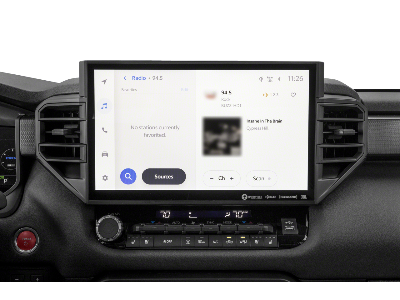 - Radio: Premium Audio w/JBL -inc: 14-inch touchscreen, 12 JBL speakers (including subwoofer and amplifier), Android Auto and Apple CarPlay compatible and SiriusXM w/3-month platinum plan trial subscription, See toyota.com/audio-multimedia for details, Connected services - Safety Connect w/up to 10-year trial, Remote Connect w/1-year trial, Drive Connect w/1-year trial, Service Connect w/up to 10-year trial, Wi-Fi Connect w/up to 3 GB within 1-month trial, See toyota.com/connected-services for details