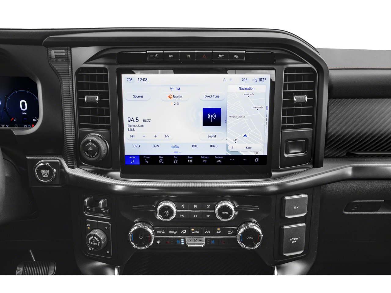 14 Speakers, 17 Cast Aluminum Wheels, 4-Wheel Disc Brakes, ABS brakes, Adjustable pedals, Air Conditioning, Alloy wheels, AM/FM radio: SiriusXM with 360L, Auto High-beam Headlights, Auto tilt-away steering wheel, Auto-dimming door mirrors, Auto-dimming Rear-View mirror, Automatic temperature control, Brake assist, Bumpers: body-color, Compass, Delay-off headlights, Driver door bin, Driver vanity mirror, Dual front impact airbags, Dual front side impact airbags, Electronic Locking w/4.10 Axle Ratio, Electronic Stability Control, Emergency communication system: SYNC 4 911 Assist, Equipment Group 801A Standard, Front anti-roll bar, Front Bucket Seats, Front Center Armrest, Front dual zone A/C, Front fog lights, Front reading lights, Front wheel independent suspension, Fully automatic headlights, Garage door transmitter, Heads-Up Display, Heated door mirrors, Heated front seats, Heated rear seats, Heated steering wheel, Illuminated entry, Internet access capable: FordPass Connect 5G, Lane Departure Warning System, Leather steering wheel, Leather Trimmed Seats, Low tire pressure warning, Memory seat, Navigation system: Connected Navigation, Occupant sensing airbag, Outside temperature display, Overhead airbag, Overhead console, Panic alarm, Passenger door bin, Passenger vanity mirror, Pedal memory, Power door mirrors, Power driver seat, Power passenger seat, Power steering, Power windows, Radio data system, Radio: B&O Unleashed Sound System by Bang & Olufsen, Rain sensing wipers, Rear reading lights, Rear step bumper, Rear window defroster, Remote keyless entry, Security system, Speed control, Speed-sensing steering, Split folding rear seat, Steering wheel memory, Steering wheel mounted audio controls, SYNC 4 w/Enhanced Voice Recognition, Tachometer, Telescoping steering wheel, Tilt steering wheel, Tough Bed Spray-In Bedliner, Traction control, Trip computer, Turn signal indicator mirrors, Twin Panel Moonroof, Variably intermittent wipers, Ventilated front seats,