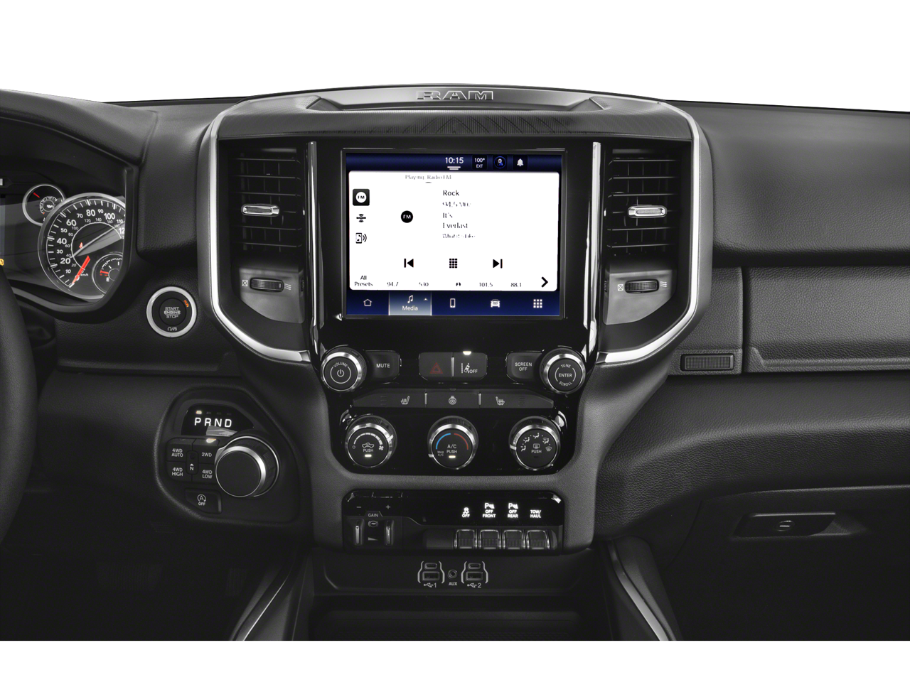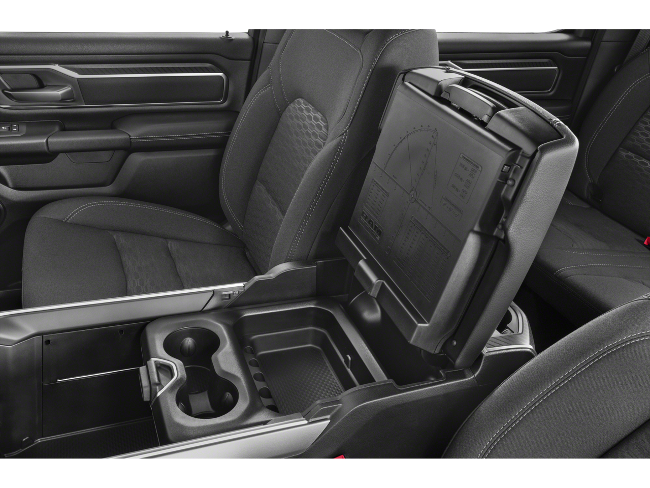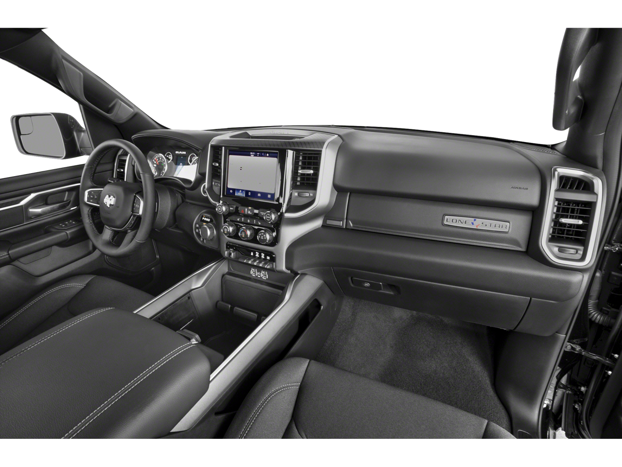 115V Auxiliary Power Outlet, 115V Auxiliary Rear Power Outlet, 12 Touchscreen Display, 2nd Row In Floor Storage Bins, 3 Rear Seat Head Restraints, 4 Way Front Headrests, 4-Wheel Disc Brakes, 400W Inverter, 4G LTE Wi-Fi Hot Spot, 6 Speakers, 9 Amplified Speakers w/Subwoofer, ABS brakes, Air Conditioning, Air Conditioning ATC w/Dual Zone Control, Alloy wheels, AM/FM radio, Apple CarPlay, Apple CarPlay/Android Auto, Auto High-beam Headlights, Auto Power-Folding Mirrors, Auto-Dimming Exterior Driver Mirror, Auto-Dimming Rear-View Mirror, Big Horn Level 2 Equipment Group, Black Exterior Mirrors, Black Premium Power Mirrors, Brake assist, Bumpers: chrome, Cloth Bench Seat, Cluster 7.0 TFT Color Display, Compass, Configurable Drive Mode, Connected Travel & Traffic Services, Connectivity - US/Canada, Convex Wide-Angle Exterior Mirror Insert, Delay-off headlights, Driver door bin, Dual front impact airbags, Dual front side impact airbags, Electronic Stability Control, Exterior Mirrors Courtesy Lamps, Exterior Mirrors w/Heating Element, Exterior Mirrors w/Supplemental Signals, Front anti-roll bar, Front Center Armrest w/Storage, Front fog lights, Front License Plate Bracket, Front reading lights, Front Seat Back Map Pockets, Front wheel independent suspension, Fully automatic headlights, Glove Box Lamp, Google Android Auto, GPS Antenna Input, GPS Navigation, HD Radio, Heated door mirrors, Heated Front Seats, Heated Steering Wheel, Illuminated entry, Integrated Voice Command w/Bluetooth®, Leather Wrapped Steering Wheel, LED Dome Lamp w/On/Off Switch, LED Footwell Lighting, Low tire pressure warning, Manual Adjust 4-Way Front Passenger Seat, Manual Folding Exterior Mirrors, Manufacturer's Statement of Origin, Media Hub w/2 Charge Only USBs, Occupant sensing airbag, Outside temperature display, Overhead airbag, Overhead console, Overhead LED Lamps, Panic alarm, ParkView Rear Back-Up Camera, Passenger door bin, Passenger vanity mirror, Power 2-Way Driver Lumbar Adjust, Power Adjust 8-Way Driver Seat, Power Adjustable Pedals, Power door mirrors, Power steering, Power windows, Premium Overhead Console, Quick Order Package 21Z Big Horn, Radio data system, Radio: Uconnect 5 Nav w/12.0 Display, Radio: Uconnect 5 W w/8.4 Display, RAM Grille Badge - Chrome, Rear 60/40 Folding Seat, Rear anti-roll bar, Rear Power Sliding Window, Rear seat center armrest, Rear step bumper, Rear Window Defroster, Remote keyless entry, Remote Tailgate Release, Security Alarm, SiriusXM w/360L, Speed control, Split folding rear seat, Steering Wheel Mounted Audio Controls, Sun Visors w/Illuminated Vanity Mirrors, Supplier Part Tracking (J-1), Tachometer, Telescoping steering wheel, Tilt steering wheel, Traction control, Trip computer, Universal Garage Door Opener, USB Host Flip, Variably intermittent wipers, Voltmeter, Wheels: 18 x 8 Cast-Aluminum Painted, BACK UP CAMERA,